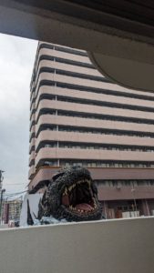 好奇心旺盛で勇敢なスタッフが、ゴジラの正面に移動しての激写がこちら!!