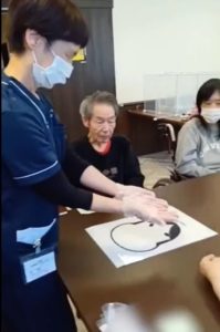 これにはスタッフも挑戦し、介護さん看護師さんともにとても笑顔一杯で楽しんでいますねー!😁