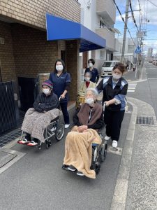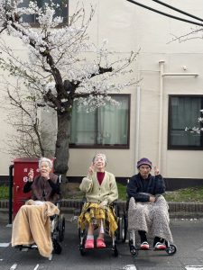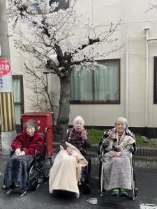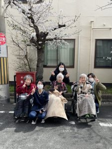 桜の花の美しさに包まれながら利用者様にとっても、スタッフにとっても、忘れられない春のひとときで、皆さんとてもご満悦のご様子でした💕