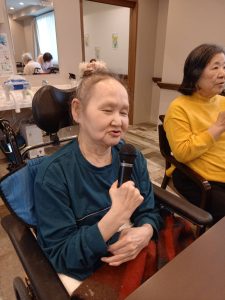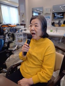 スタッフと利用者様のデュエットに始まり、利用者様同士の歌の輪、そしてソロでの渾身の歌声が、最高潮の盛り上がりを見せています!