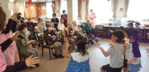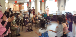 ゲームで打ち解けた後は、園児さんたちからご入居者様への歌のプレゼントです!🎵