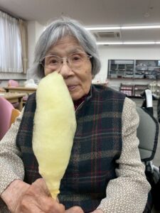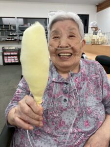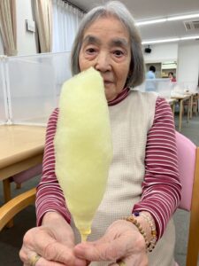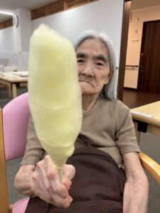 「綿飴って自分たちでも作れるんだね!」「昔、よくお祭りで食べたわ~」と、スタッフはもとより、利用者様もワクワクのご様子。綿飴の甘い香りに包まれ、自然と笑顔で会話が弾みます。日々の活動を心から楽しんでいらっしゃる様子がうかがえ、私たちスタッフも嬉しくなりました!